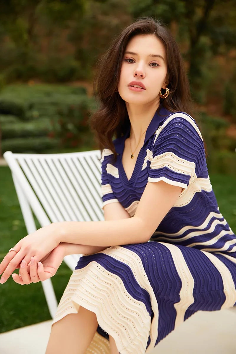 ROBE AMPLE BICOLORE TRICOTÉE À RAYURES