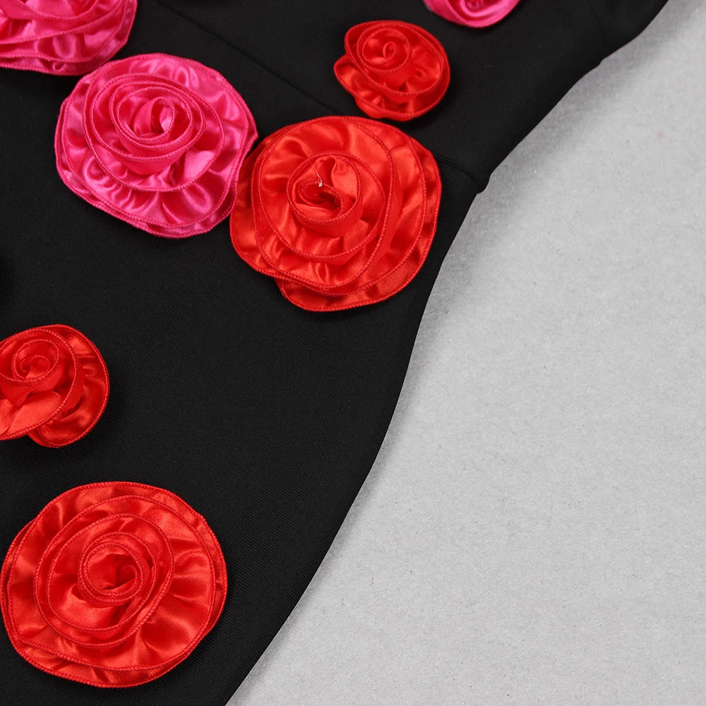 ROBE BANDAGE À FLEURS ROSES UNE ÉPAULE DÉNUDÉE