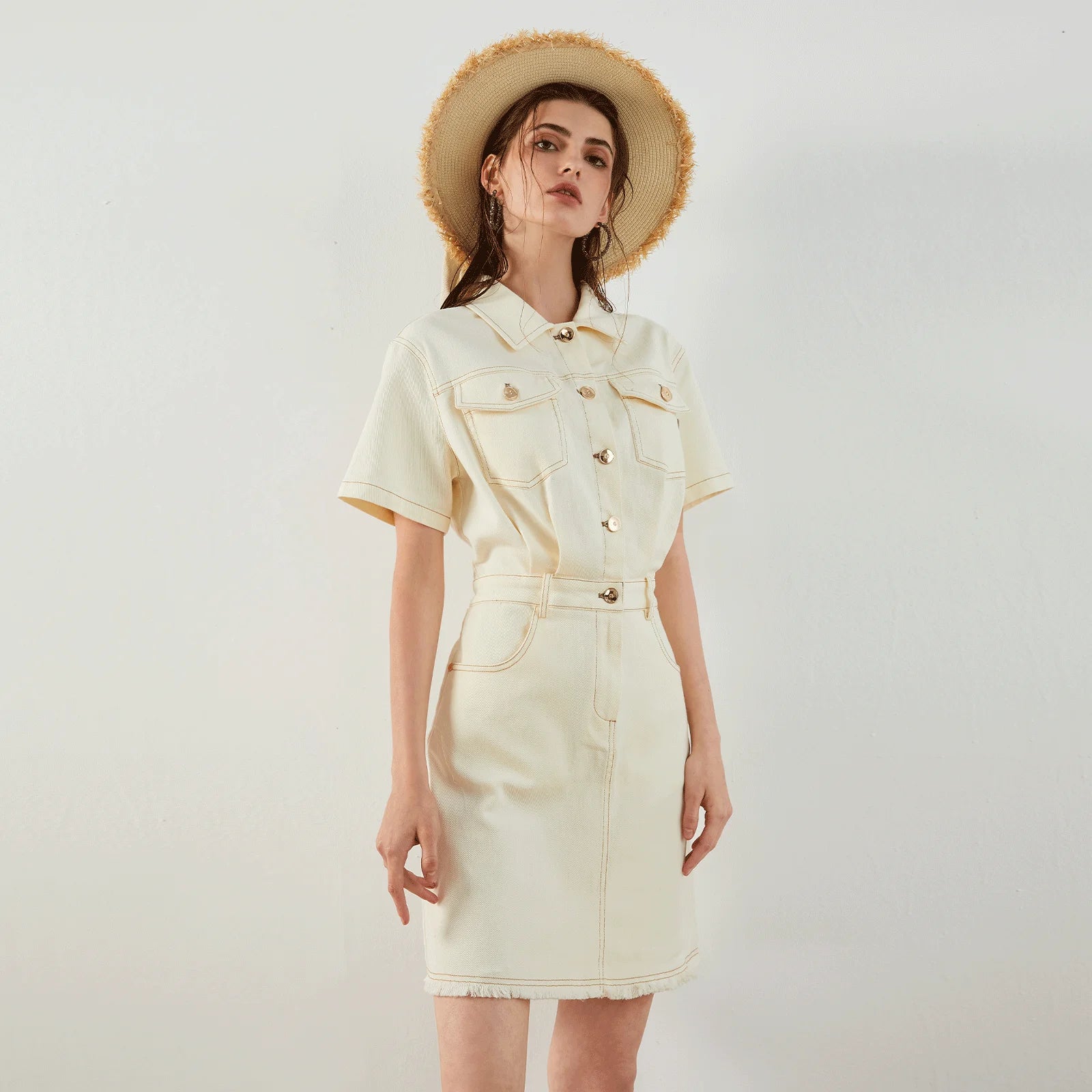 ROBE DÉCONTRACTÉE COURTE EN COTON BOUTONNÉE HAUTE QUALITÉ