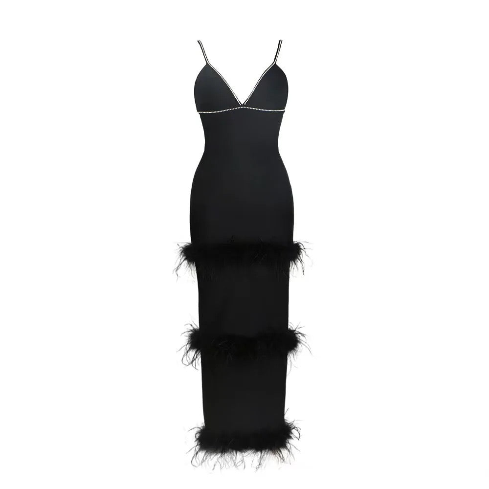 ROBE LONGUE AVEC DÉTAILS PLUMES