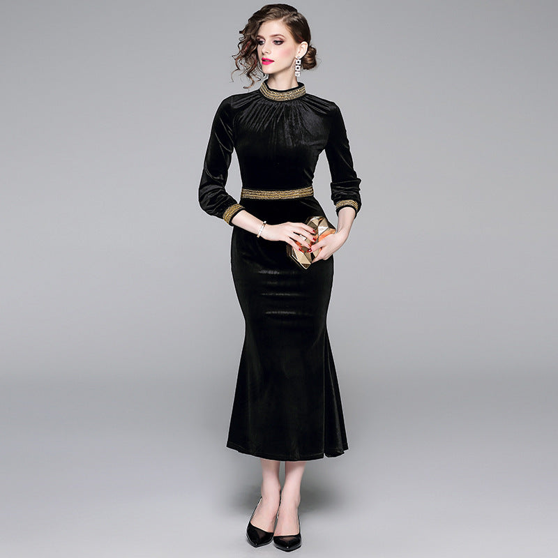 ROBE MI-LONGUE EN VELOUR PERLÉE