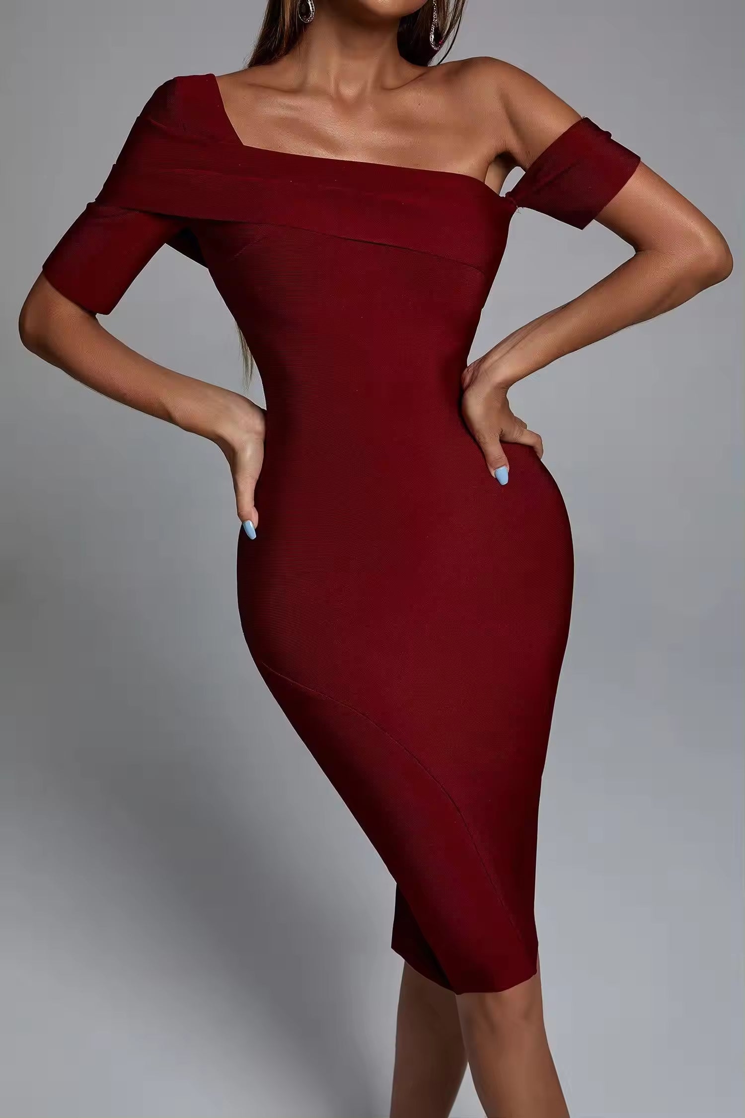 ROBE MOULANTE BORDEAUX MANCHES COURTES