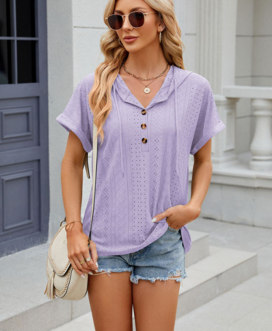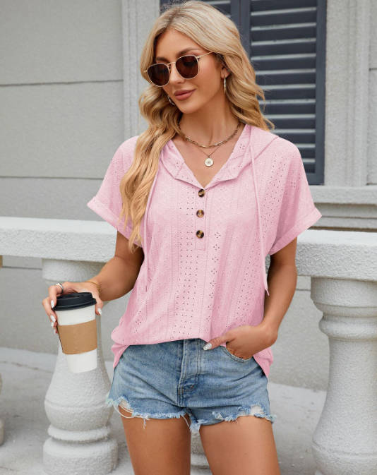 T-SHIRT BOUTONNÉ À CAPUCHE