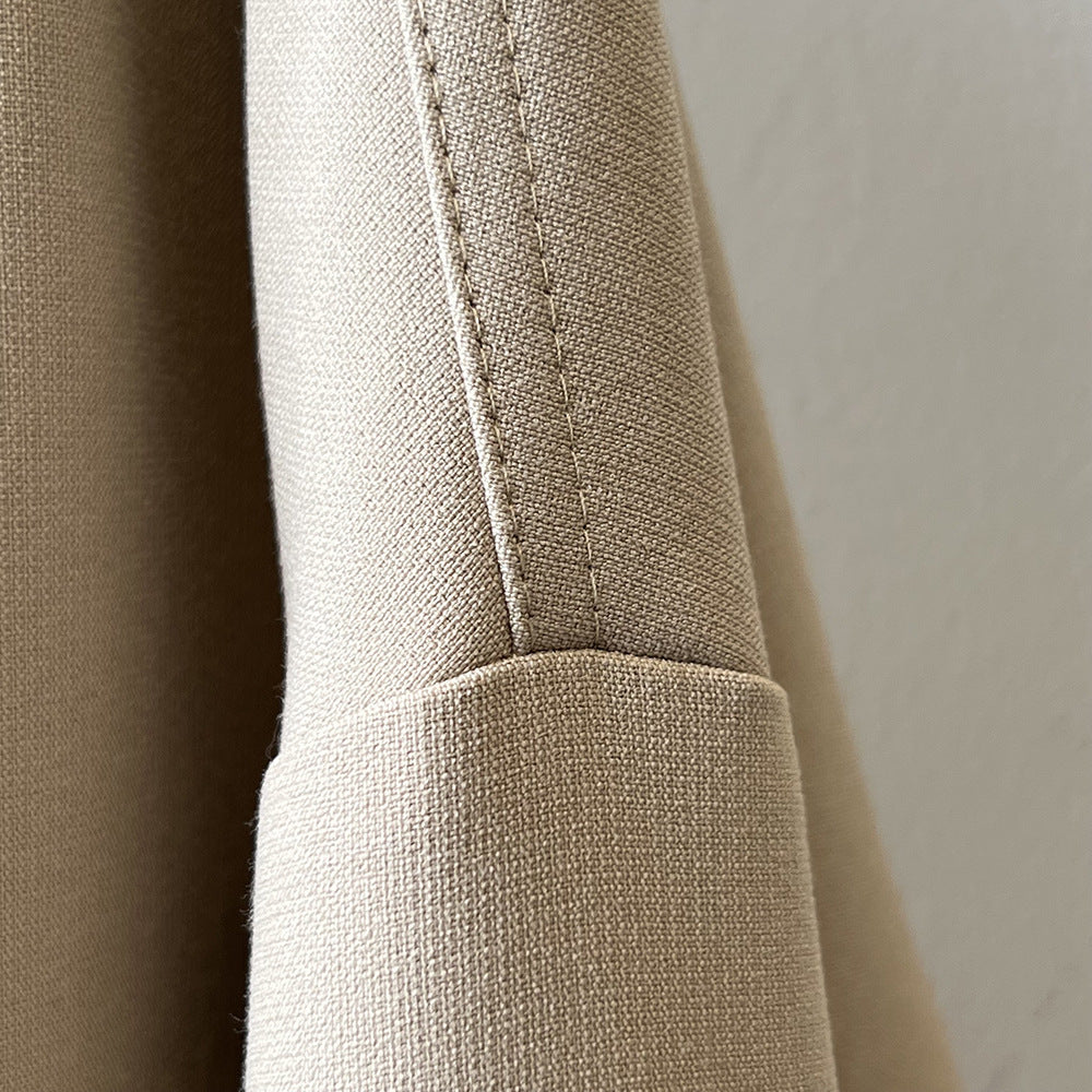 Beau vêtement. Le matériau est assez dense, pas liquide. La seule chose est que cela me semble étrange sur ma poitrine. Je vais le faire finir en atelier. Volant en bas sans broderie, tissu lisse.